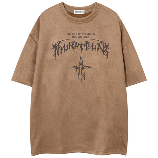 Summer Men Vintage Suede T Shirt Cross Graphic Gothic Punk Tee Tops Streetwear Harajuku Oversized Hip Hop T-shirt Male