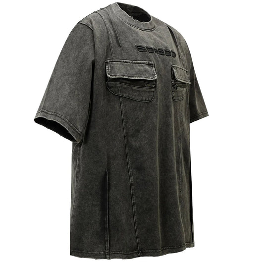 Pockets Patchwork T Shirts Vintage Harajuku Oversized Men Tee Tops Streetwear Hip Hop Cargo T-shirt 2025 New