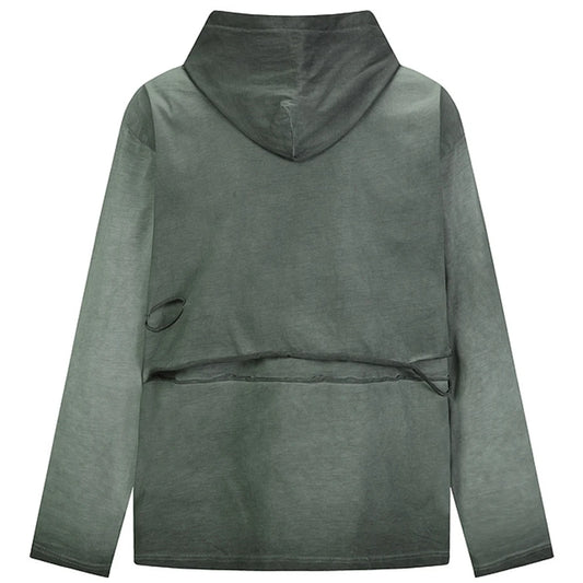Vintage Ripped Oversized T Shirts Long Sleeve Hooded Tshirts Tee Tops Men Streetwear Harajuku Hip Hop T-shirts