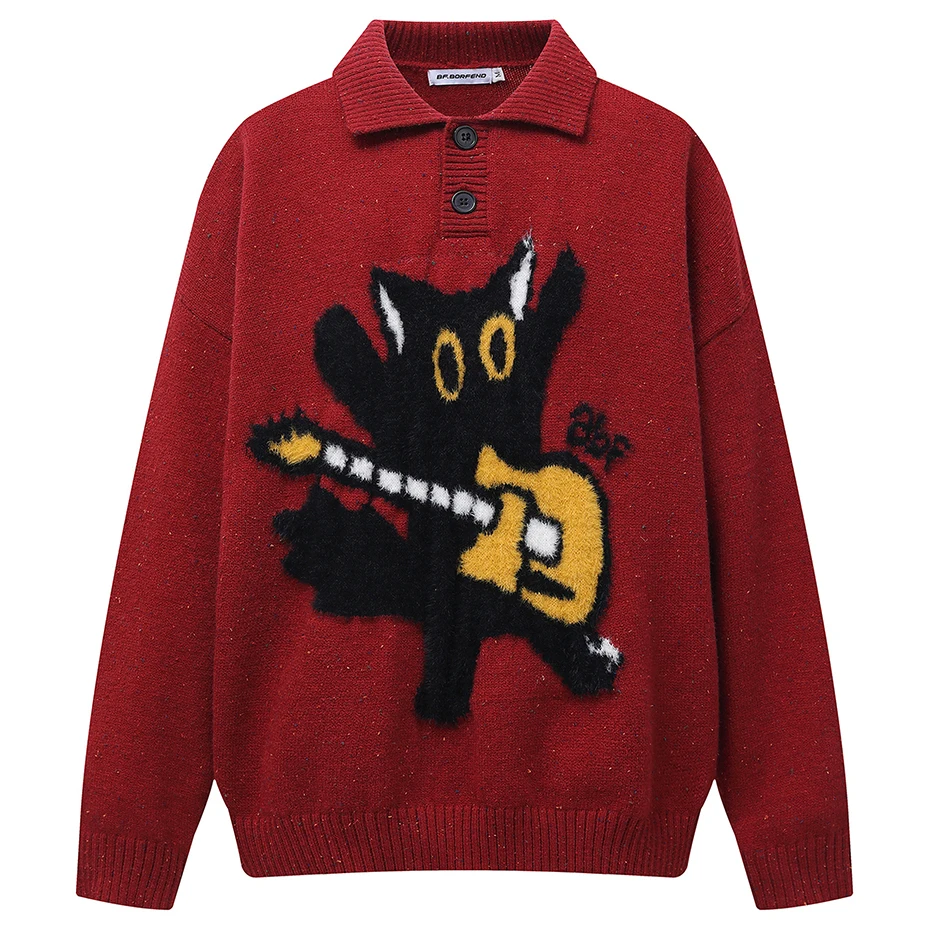 Cartoon Graphic Sweaters Men Streetwear Harajuku Hip Hop Oversized Sweaters Knit Pullover Jumper Casual Loose Sweaters