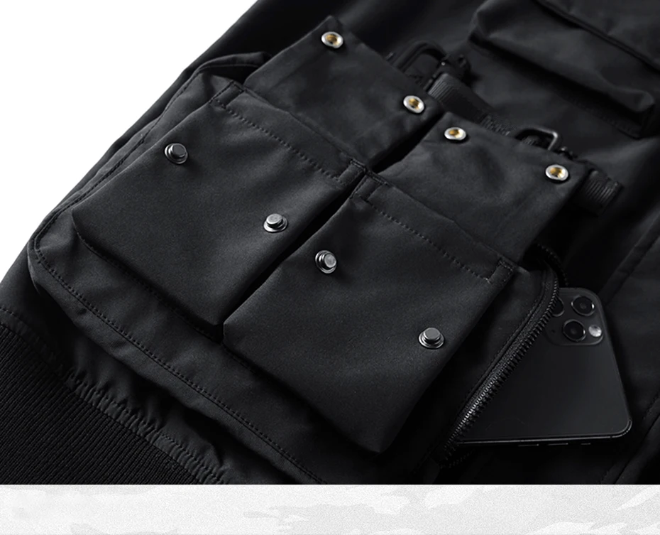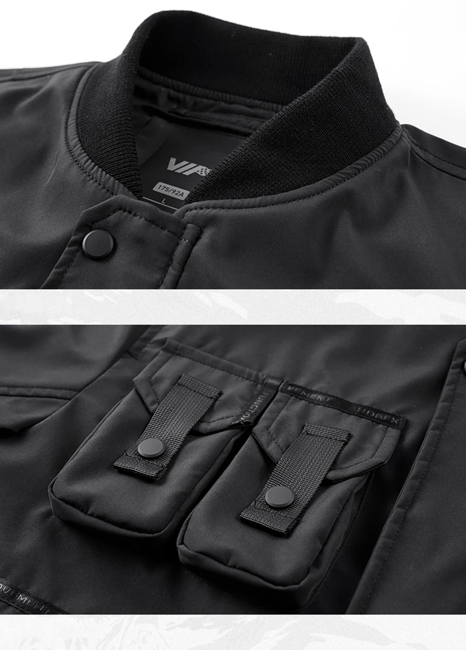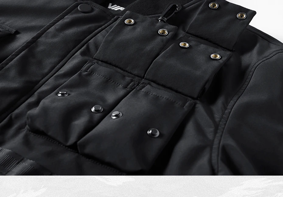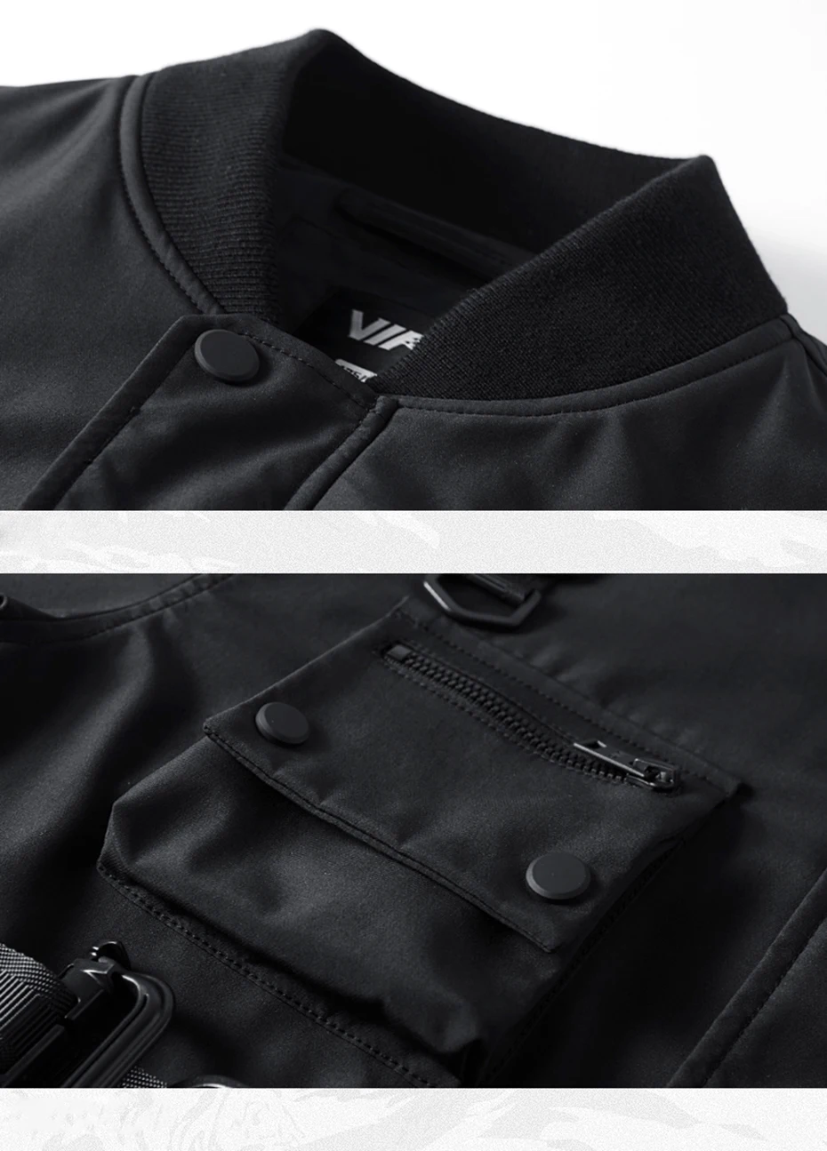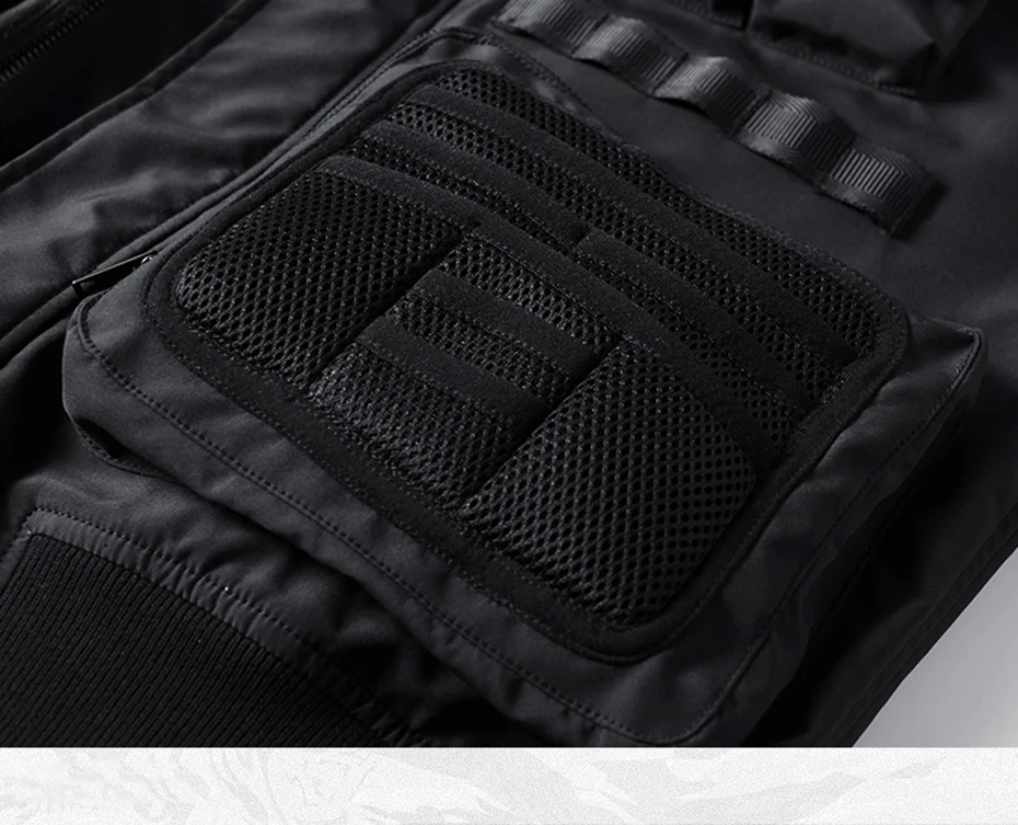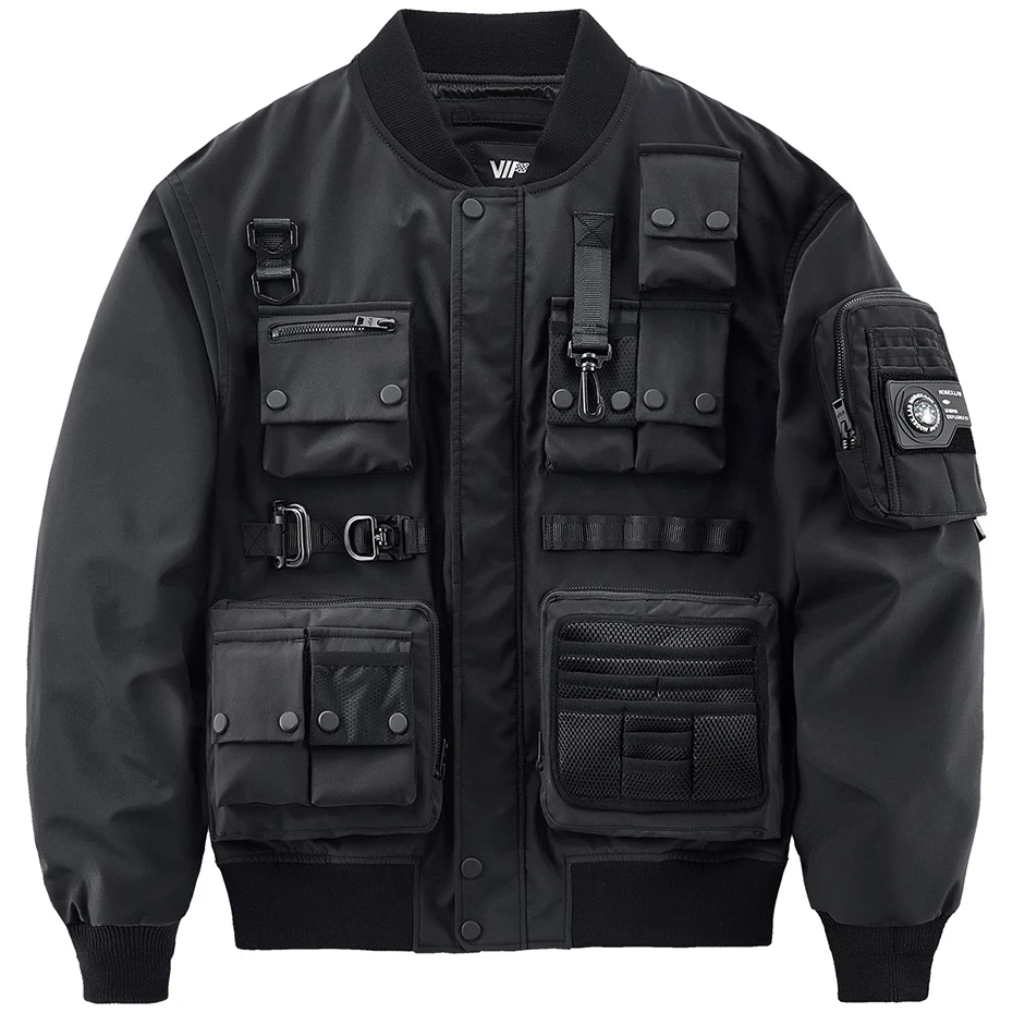 Punk Hip Hop Bomber Jacket Compass Sleeve Pockets Ammo Bags Button Ribbon MA1 Pilot Jackets Men Fashion Streetwear Harajuku Coat