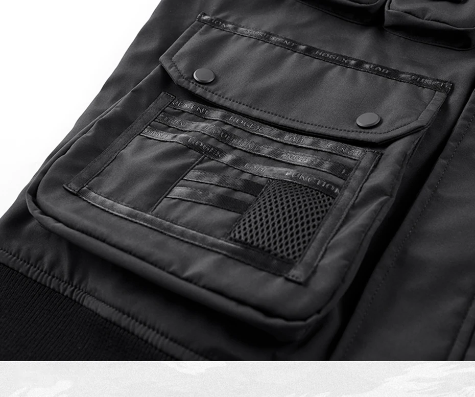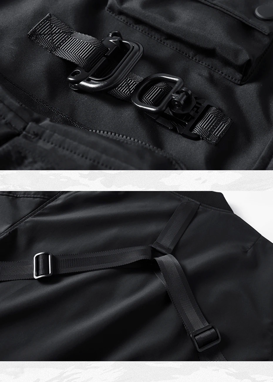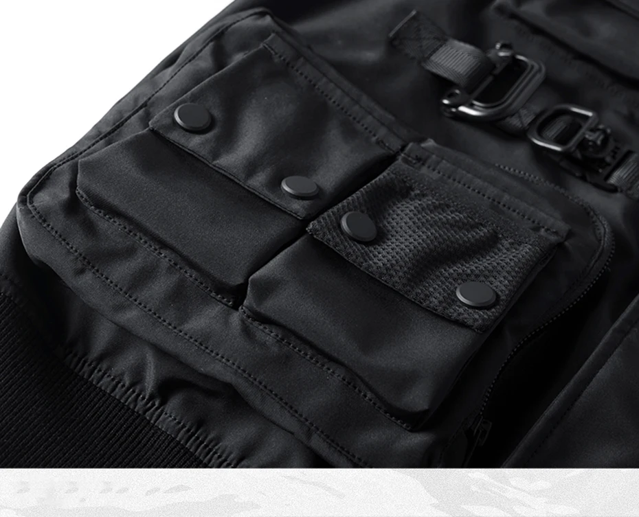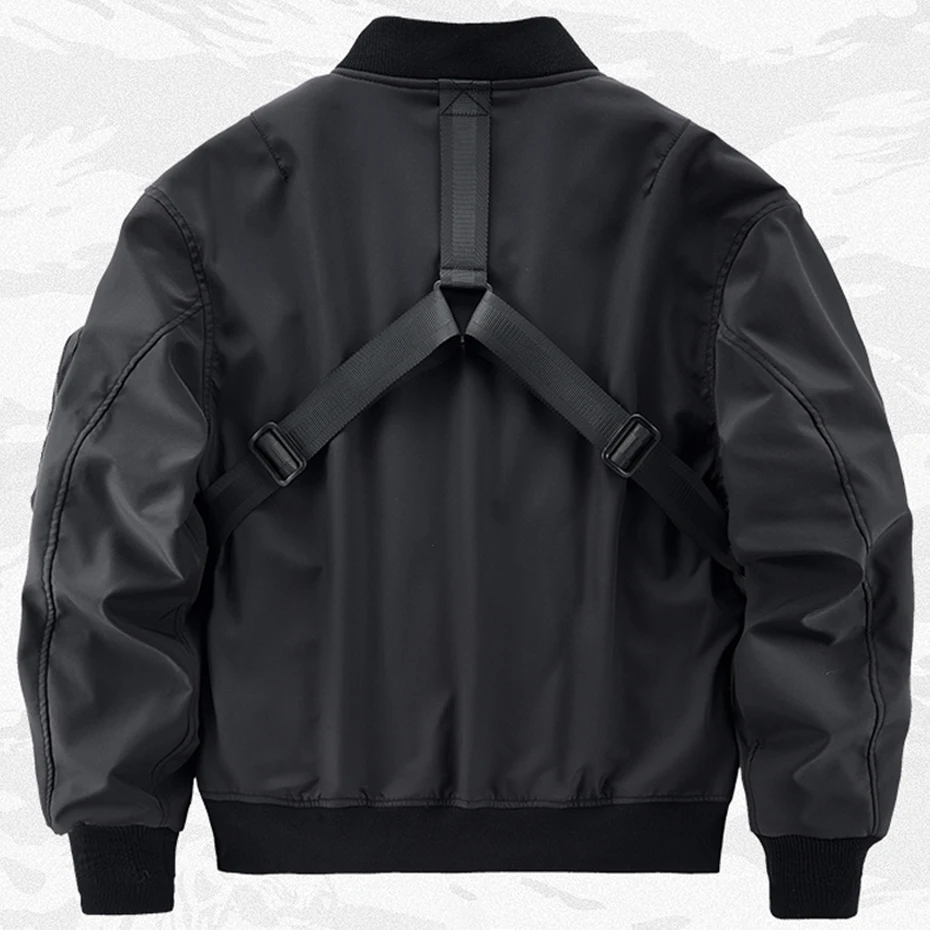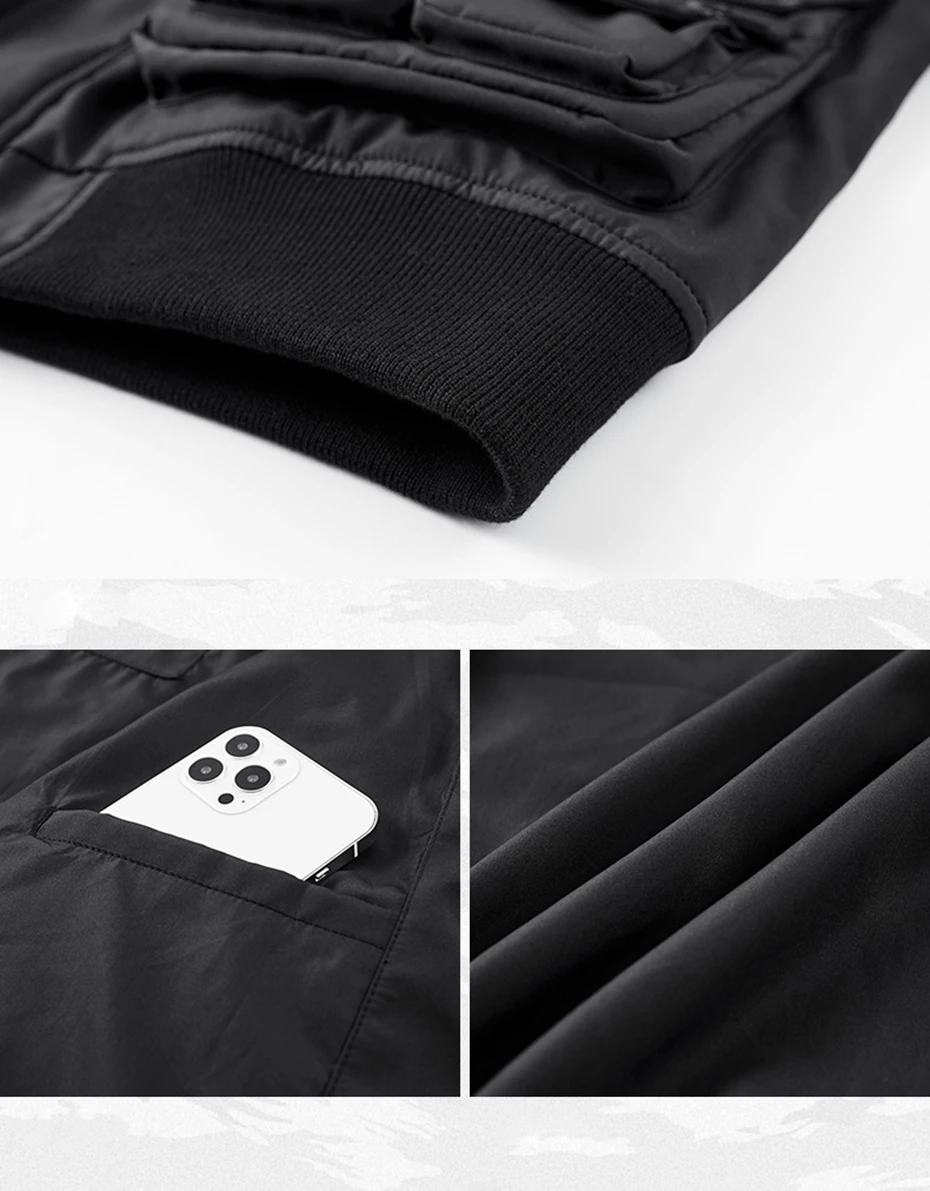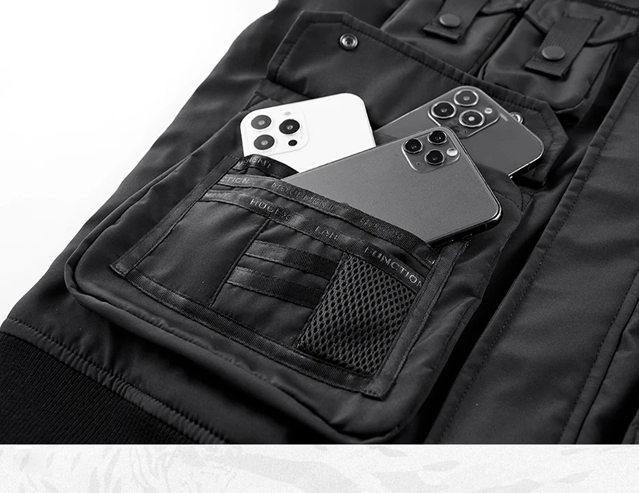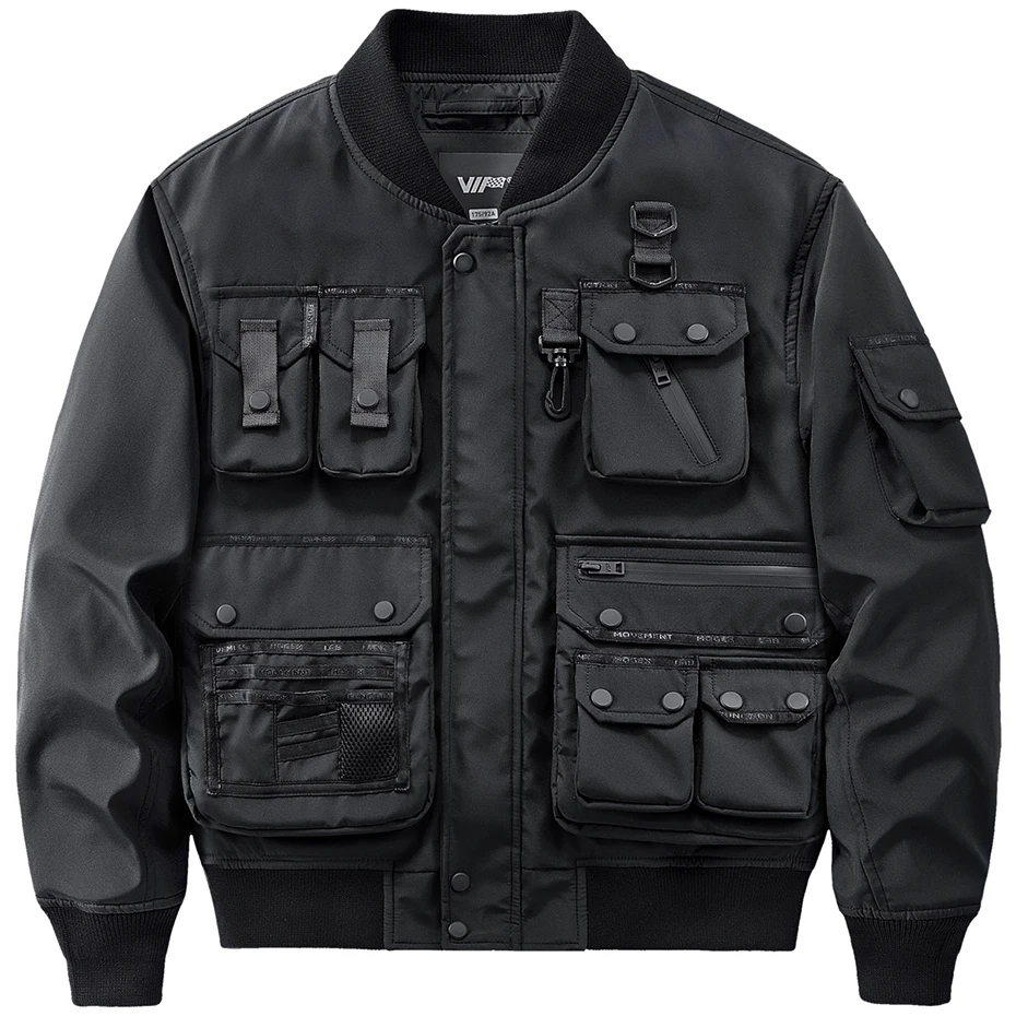 Punk Hip Hop Bomber Jacket Compass Sleeve Pockets Ammo Bags Button Ribbon MA1 Pilot Jackets Men Fashion Streetwear Harajuku Coat