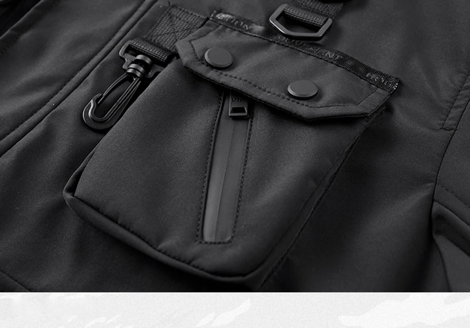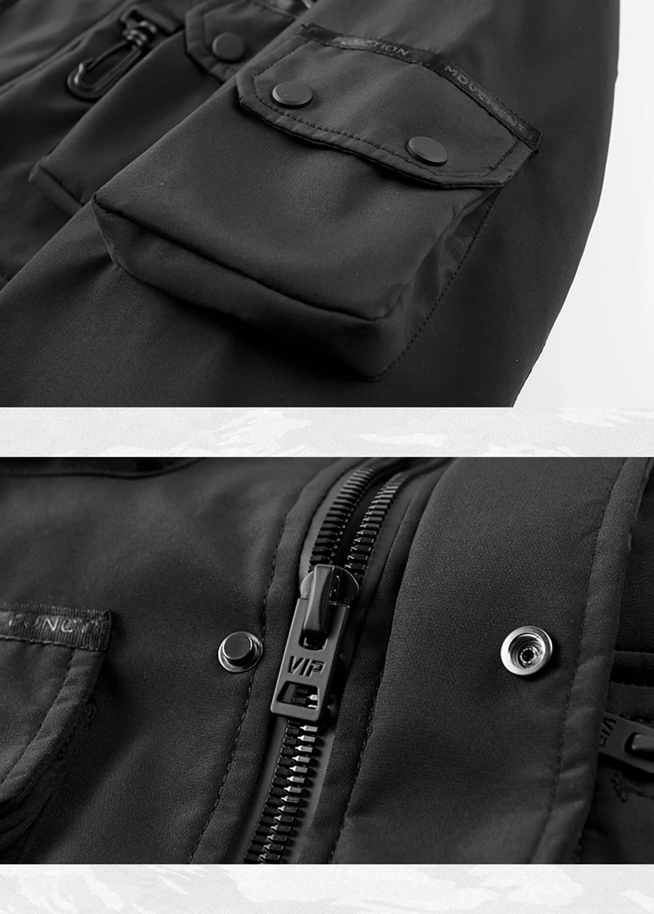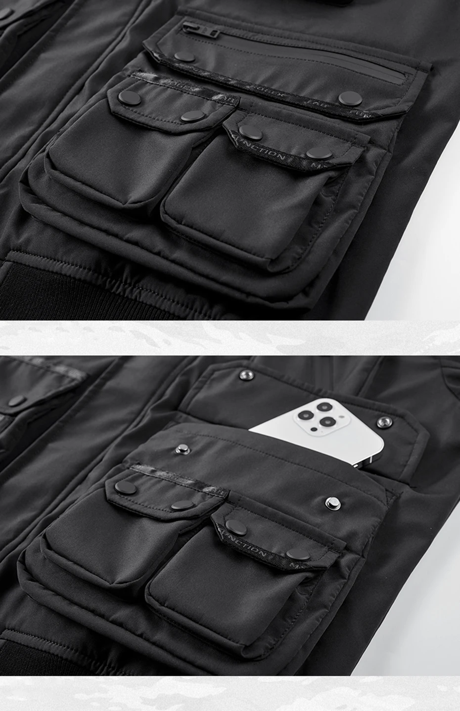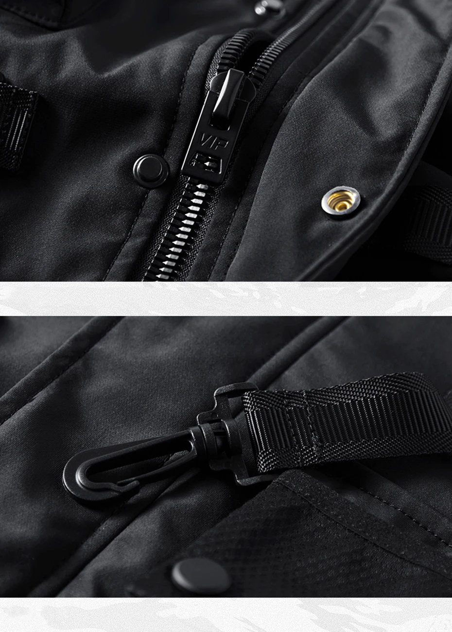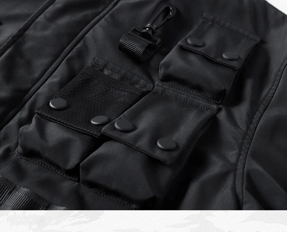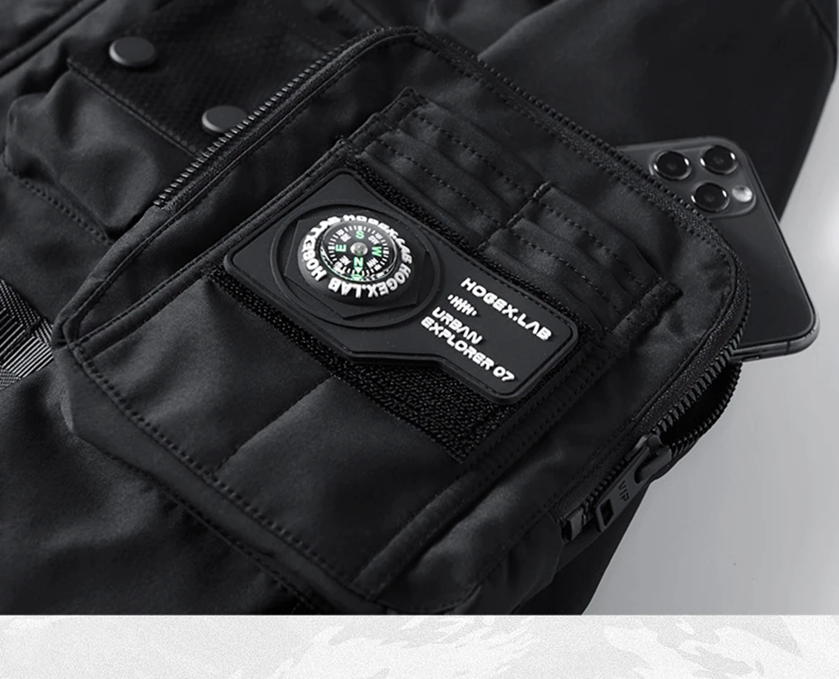 Punk Hip Hop Bomber Jacket Compass Sleeve Pockets Ammo Bags Button Ribbon MA1 Pilot Jackets Men Fashion Streetwear Harajuku Coat