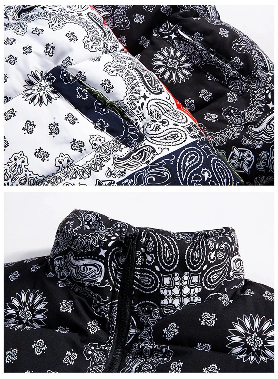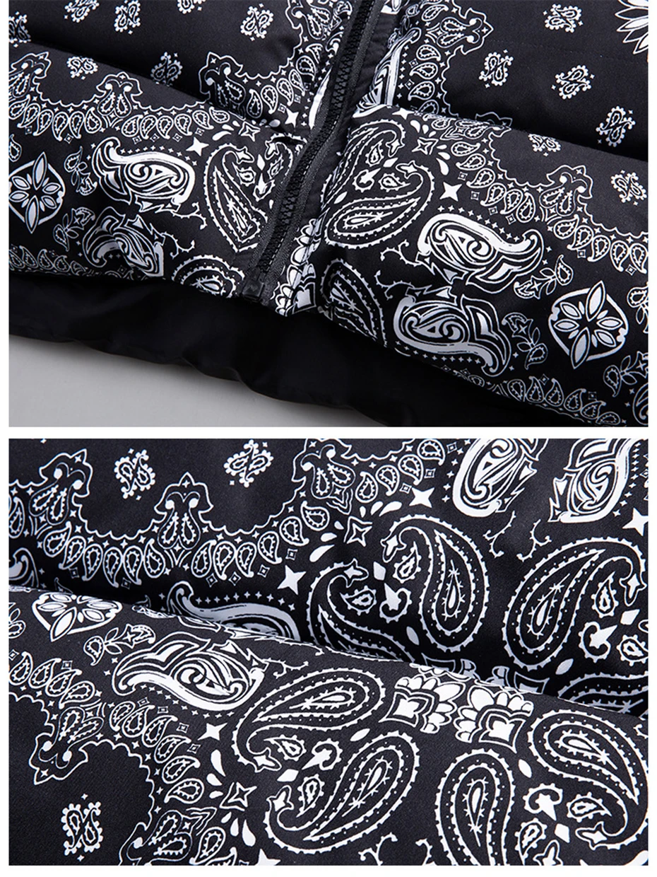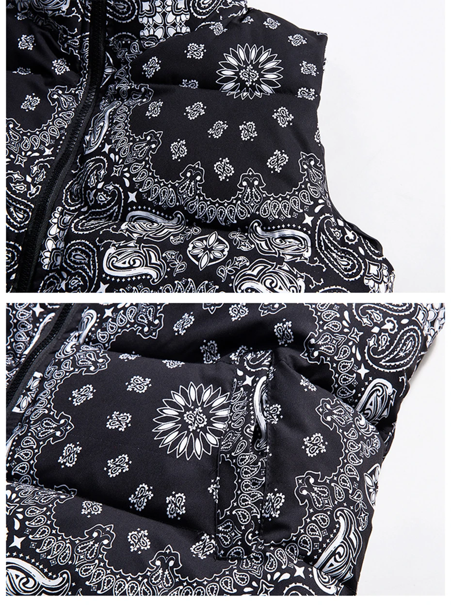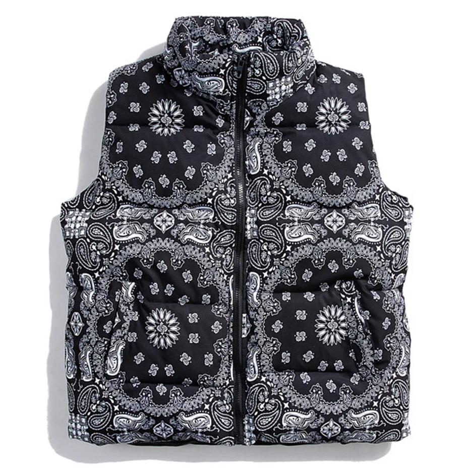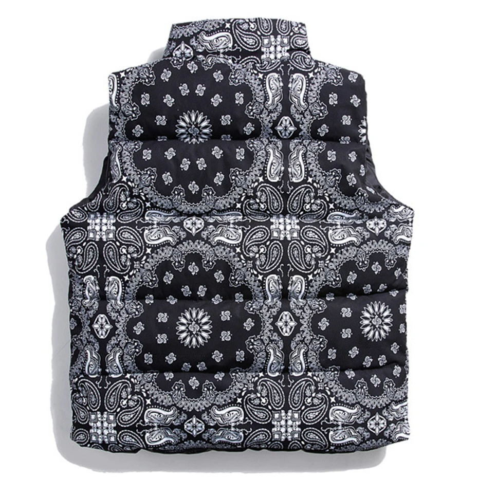 Winter Padded Vest Paisley Bandana Pattern Thick Warm Vests Fashion Streetwear Hip Hop Puffer Jackets Parkas Coats Men