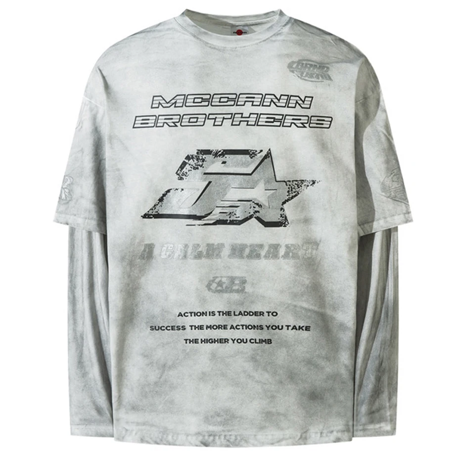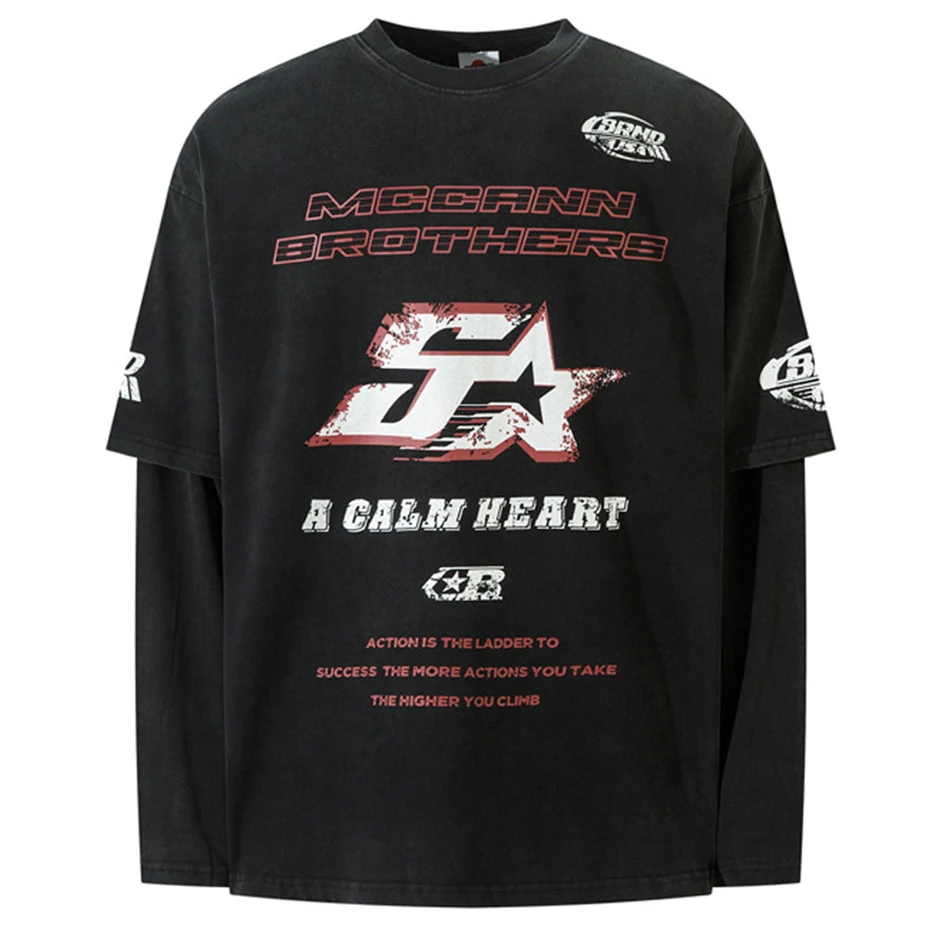 Harajuku Vintage Oversized T-shirts Men Streetwear Hip Hop Long Sleeve T Shirts Washed Retro Loose Tee Tops
