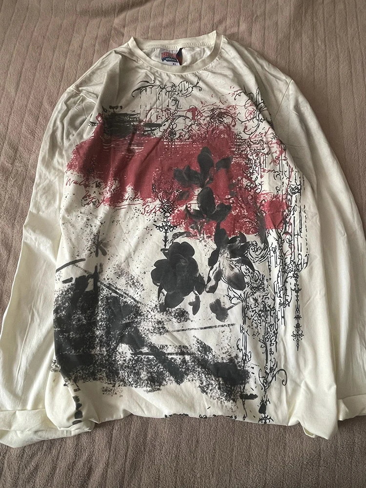 Hip Hop Men T-shirt Flower Graphic Vintage Long Sleeve Tshirts Gothic Punk Oversized Harajuku T Shirts Tee Tops