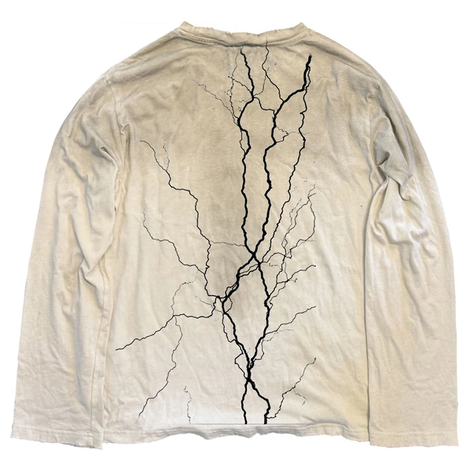 Vintage Oversized T-shirts Lightning Graphic Long Sleeve T Shirts Harajuku Loose Casual Tee Tops Unisex Retro Tshirts