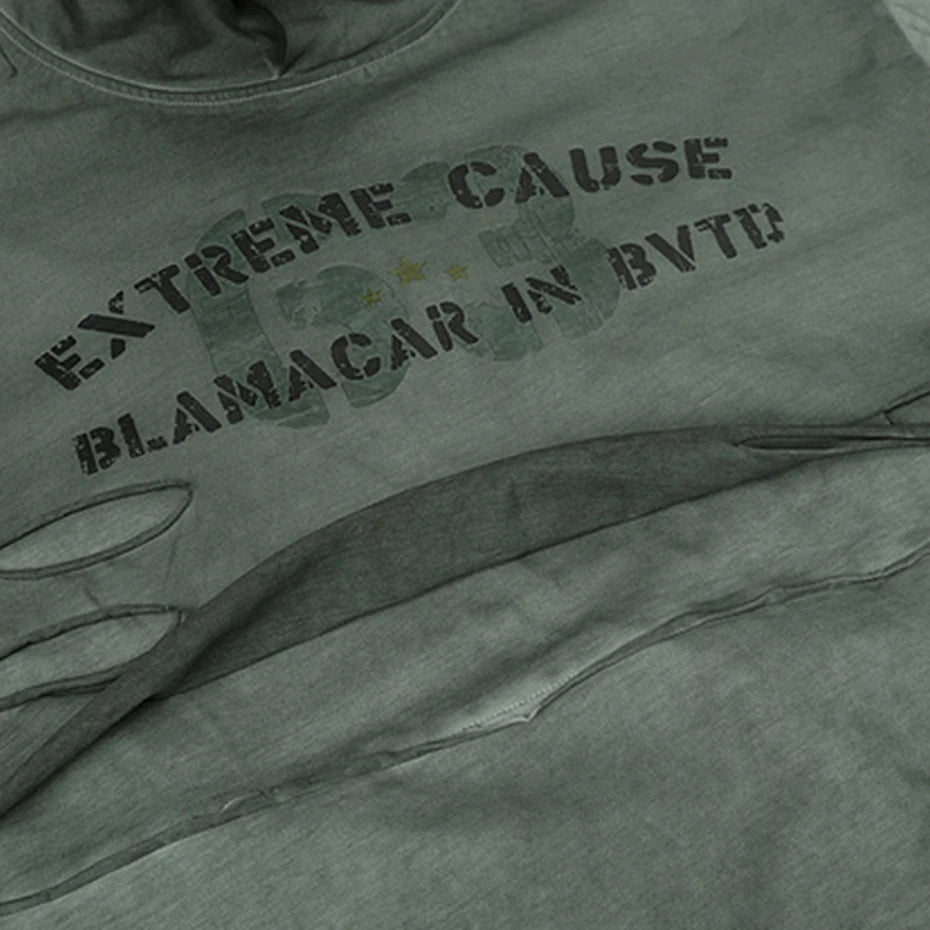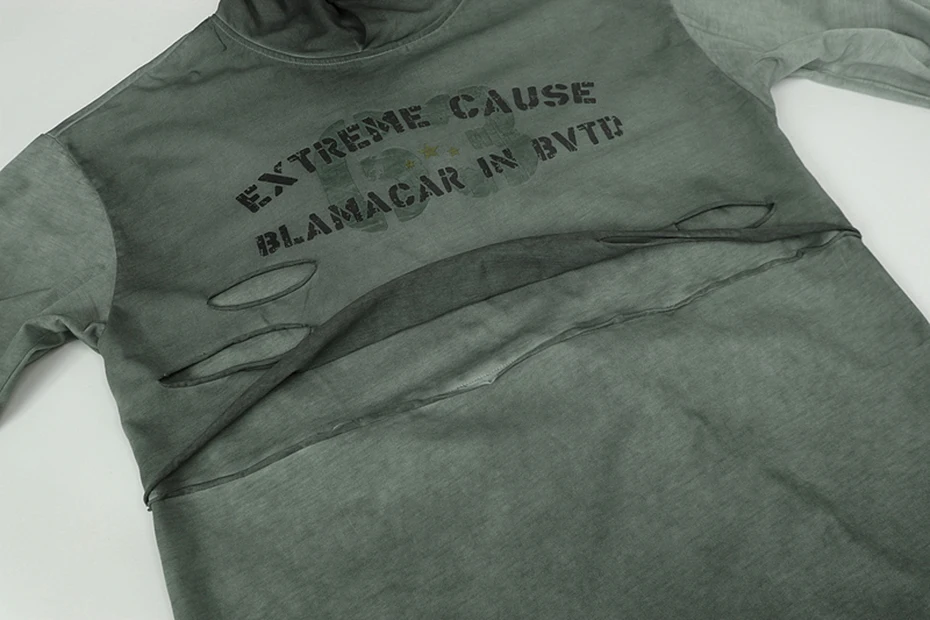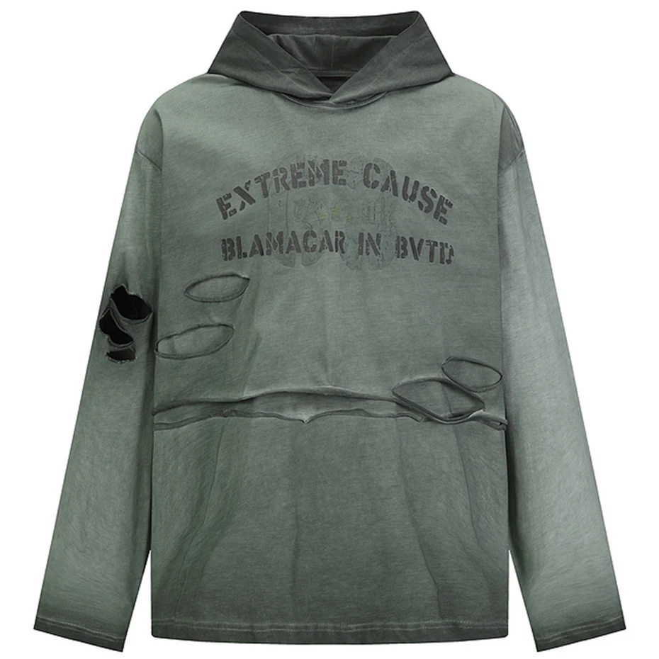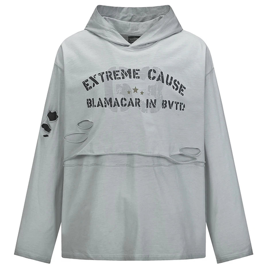 Vintage Ripped Oversized T Shirts Long Sleeve Hooded Tshirts Tee Tops Men Streetwear Harajuku Hip Hop T-shirts