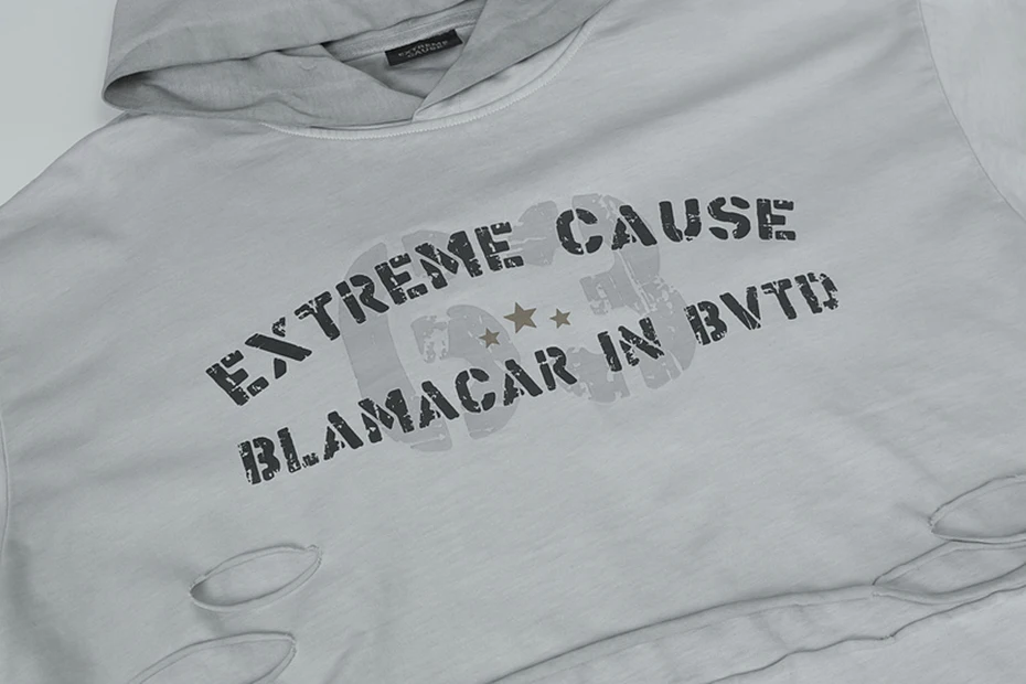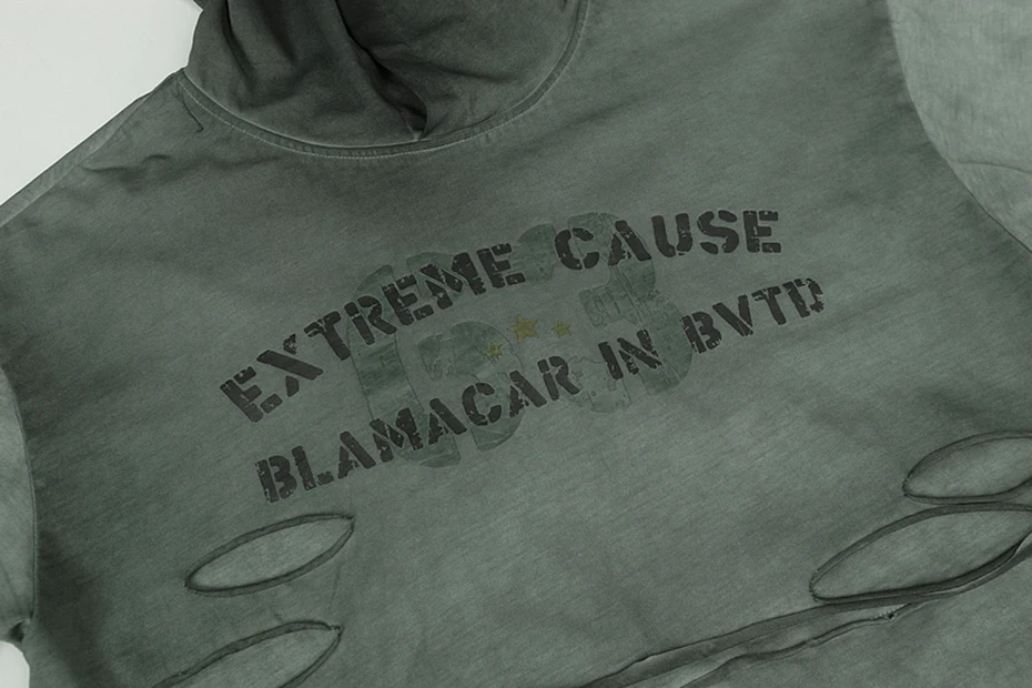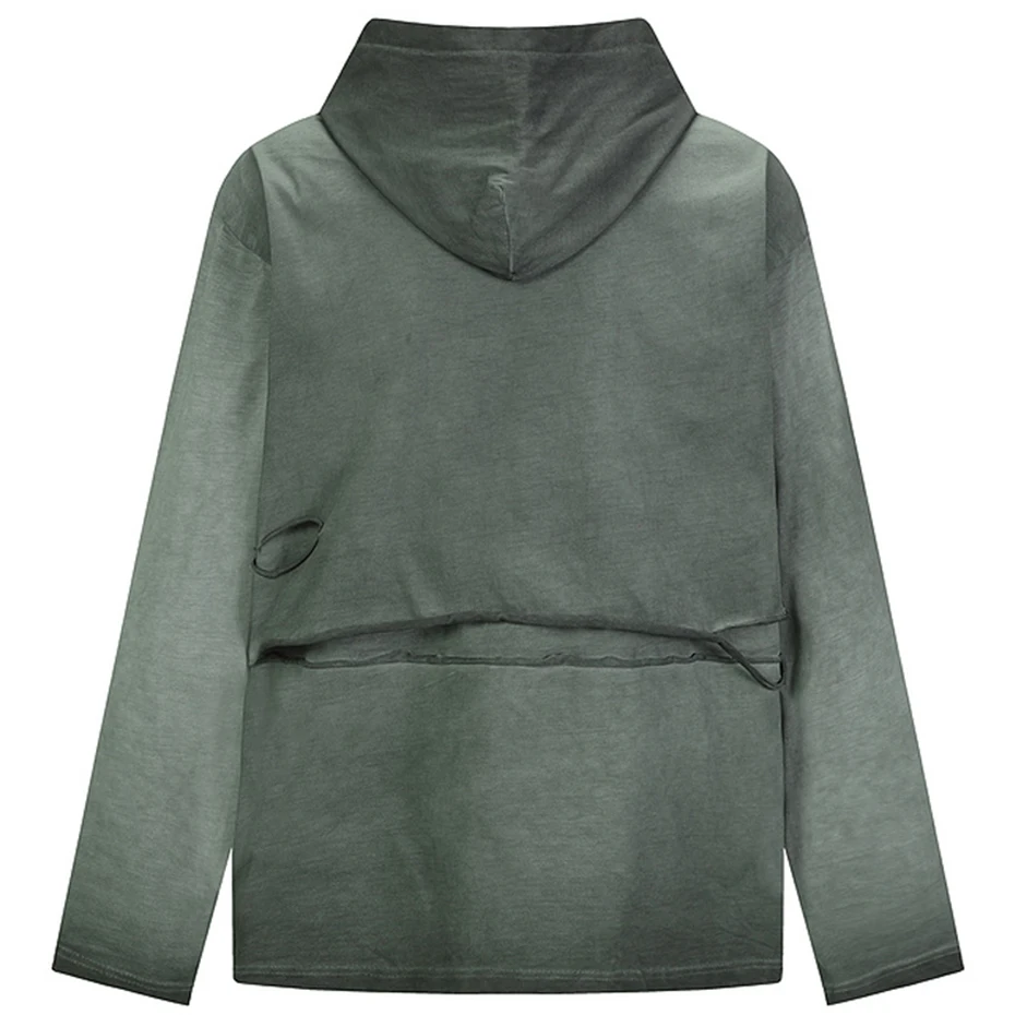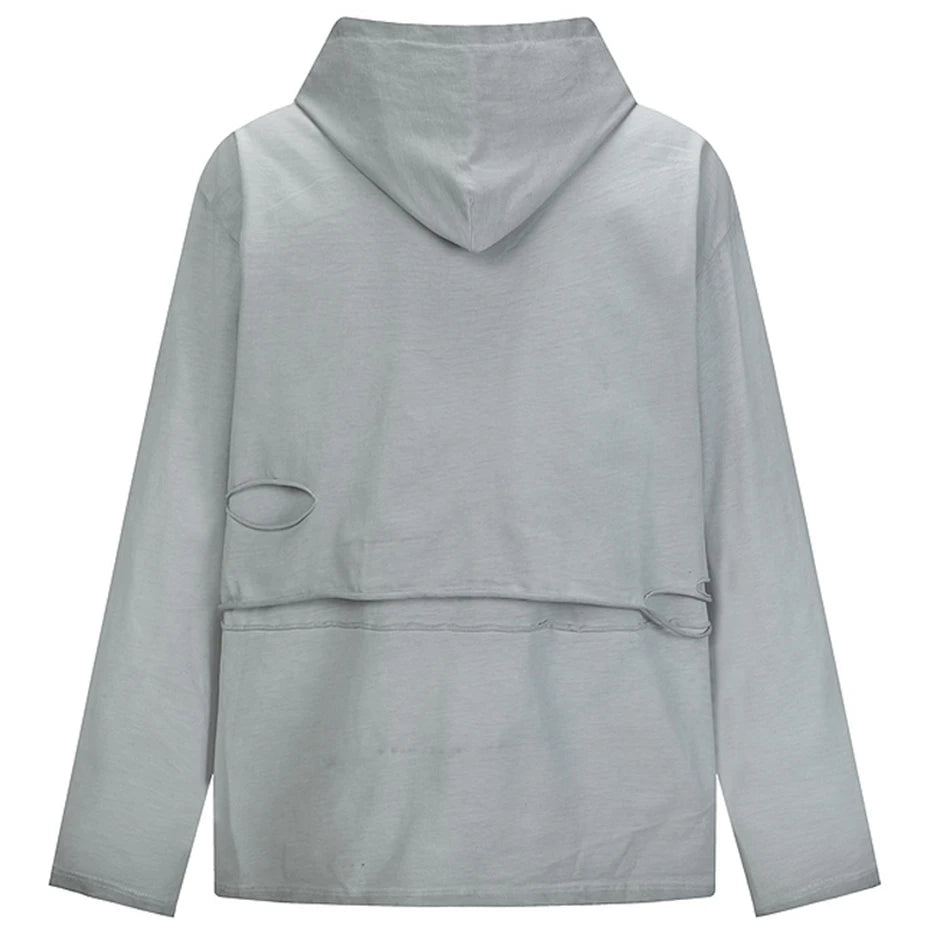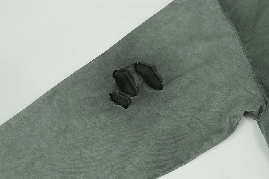 Vintage Ripped Oversized T Shirts Long Sleeve Hooded Tshirts Tee Tops Men Streetwear Harajuku Hip Hop T-shirts